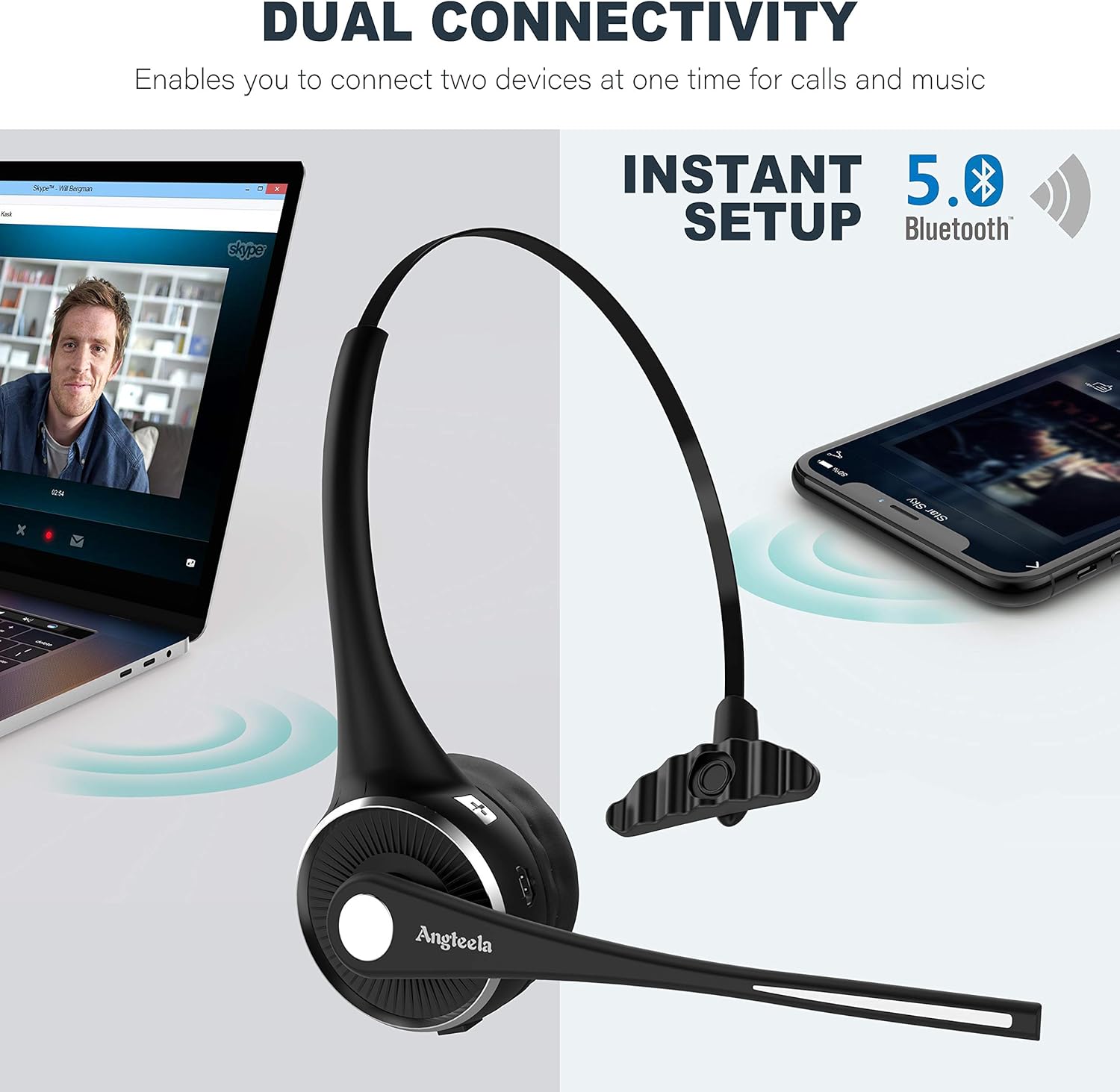 1-Bluetooth Headset, Angteela-Wireless Headset with Boom Mic